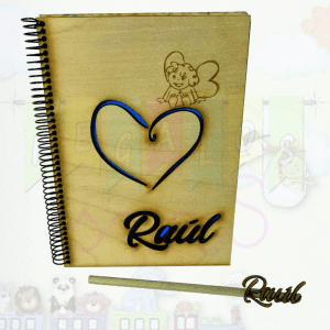 Cuadernos de madera personalizados Corazón Azul